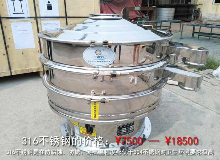316不銹鋼是在防腐蝕、防銹、耐高溫程度都優于304不銹鋼,同時還具有更強的耐強酸強堿,但是由于它的價格較高,,所以在振動篩行業的使用率不如304不銹鋼,但是對于衛生環境要求極高、也有大預算的用戶您也可以放心選擇,畢竟一分價錢一分貨,316不銹鋼不會讓您失望。