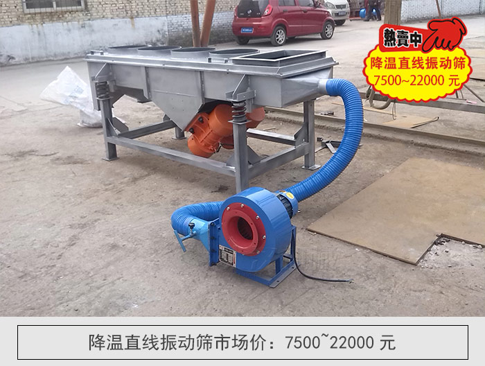 降溫直線振動篩是在大漢生產的DZSF系列直線振動篩的基礎上,增加了風機降溫冷卻系統的新型直線振動篩,安裝后可將高溫物料降溫后繼續篩分,這樣一臺風機降溫冷卻系統的價格在幾百到上千元不等,這是降溫直線振動篩加高提升的一個方面。