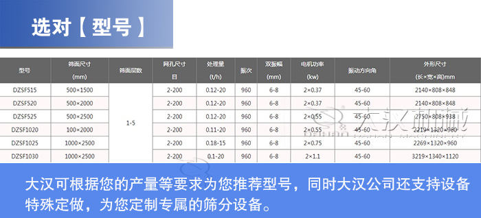選型需要綜合考慮乳糖特性、篩分產量等基礎條件,分析乳糖的特性(粒度大小、濕度)和對網目、層數等要求。考慮材質、生產場地等條件。我們公司可以根據您的產量等要求為您推薦型號,同時大漢公司還支持設備特殊定做,為您定制專屬的篩分設備。