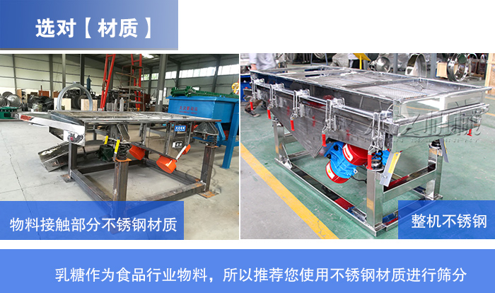 注:乳糖為食品行業物料,所以推薦您使用不銹鋼材質的振動篩