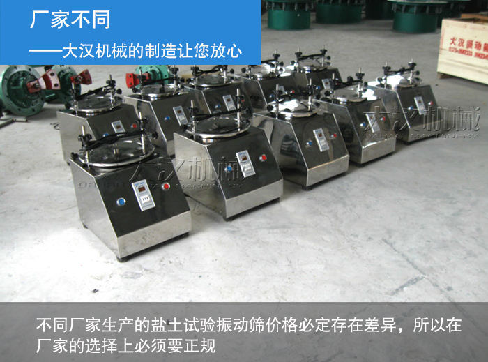 除了以上購買方式造成的價格差異外,材質和廠家也是造成鹽土試驗振動篩價格差異的因素:
