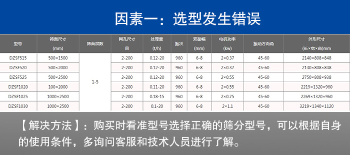【解決方法】:購買時看準型號選擇正確的篩分型號,可以根據自身的使用條件,多詢問客服和技術人員進行了解。