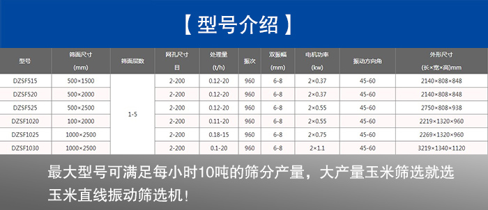 大型號可滿足每小時10噸的篩分產量,大產量玉米篩選就選玉米直線振動篩選機!