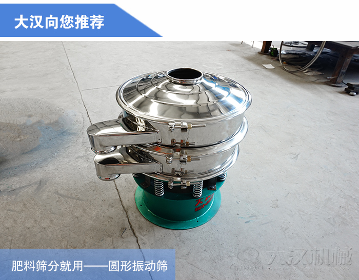 以上就是小編今天為您介紹的肥料圓形振動篩介紹,大漢機械作為一家直銷型廠家,價格更加優惠,為您提供標機的同時也可以為您免費定制!