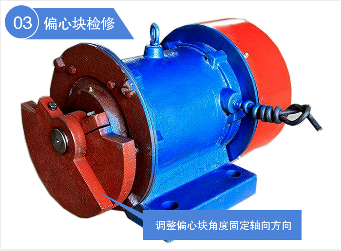 振動(dòng)電機(jī)安裝偏心塊調(diào)整激振力時(shí),需要兩內(nèi)側(cè)為固定偏心塊應(yīng)在軸向方向保持重合,再將兩端軸上的外則可調(diào)偏心塊向同一方向調(diào)整為相同角度,否則電機(jī)產(chǎn)生巨大的錯(cuò)向激振力,以至發(fā)生損壞振動(dòng)機(jī)械的現(xiàn)象。